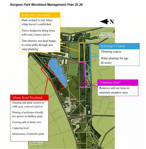 Friends of Burgess Park hosted an event in Burgess Park led by Alastair McKinlay from TCV (The Conservation Volunteers) on assessing woodland condition.