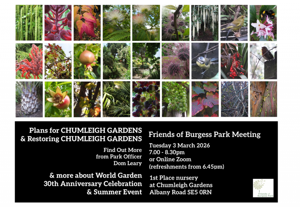 All welcome, dress for the weather and woodland work. Book here Burgess Park Woodland Maintenance | Eventbrite Booking fee reimbursed on attendance.